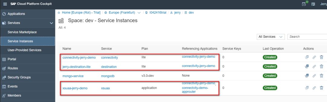 这个connectivity-jerry-demo就是稍后我要部署到SAP云平台上的Web应用名称。
