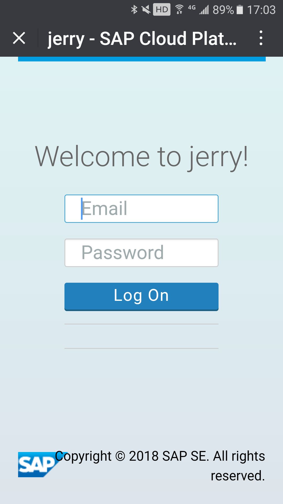 2. App Router将请求重定向到XSUAA实例,弹出登录界面。该实例负责完成登录认证,稍后会创建它。下图是登录界面在我手机上打开的效果。