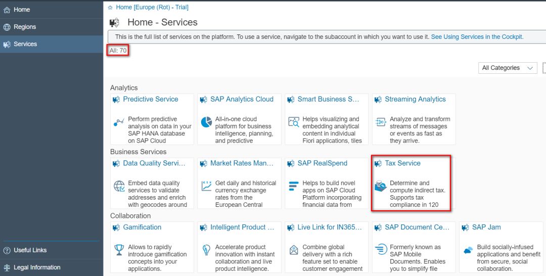 SAP云平台上提供的标准服务,既包括上图中例如Tax这种传统的业务服务,也包含前文提过的在数字化转型中起着重要作用的Internet of Things(物联网),Leonardo Machine Learning(机器学习)这些新兴技术。