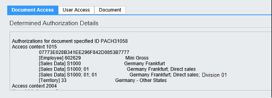 例如这里,有两个访问控制字段,一个是Employee(1010),另一个是SalesOrganisation(9001),当出现多个访问控制字段时,系统只会以最后出现的访问控制字段为主.