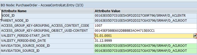 当我们保存时, AccessControlContext中关联的值被填充上,然后系统会把关联中的UUID值保存到SAP_AccessControlList中的OBJECT_UUID-CONTENT, AccessControlContext括号内的对象会转化为CODE,存放到SAP_AccessControlList中的ACCESS_CONTEXT_CODE.