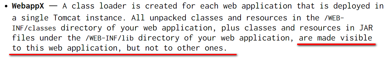 当然如果想只用一份库文件,可以把它放到目录 [tomcat-installation-directory]/common/lib下面。更多细节参考stackoverflow上的讨论.