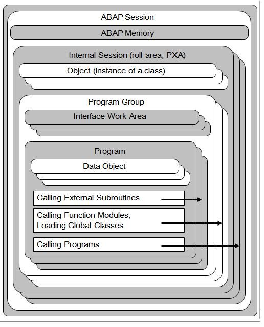 下图也直观表明了每次调用SUBMIT( calling programs)时会新起一个Internal Session。