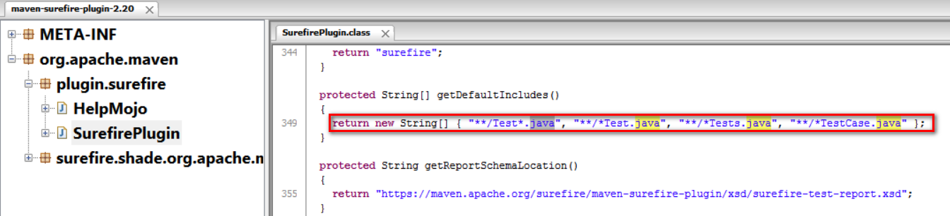 那么maven-surefire-plugin是如何知道哪些.java文件里面的测试方法需要执行呢?