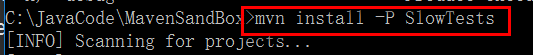 然后用命令行mvn install加上参数-P SlowTests只执行category为SlowTests的那些方法: