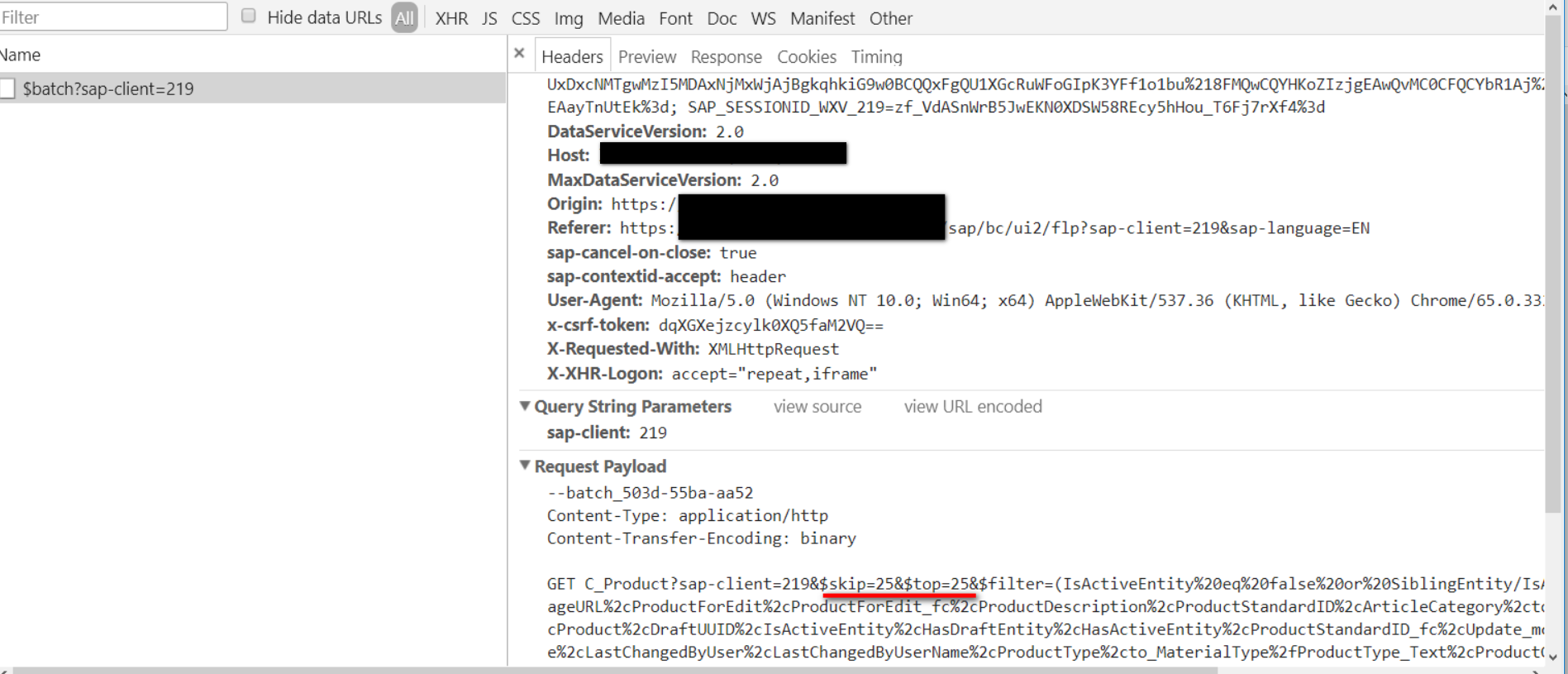 为什么分页的尺寸为25?在Fiori UI列表实现文件sap.m.ListBase.js里,默认的分页尺寸(GrowingThreshold)为20,这说明一定存在某个配置,或者在Product Master应用某处的JavaScript代码将这个分页尺寸从20改成了25。