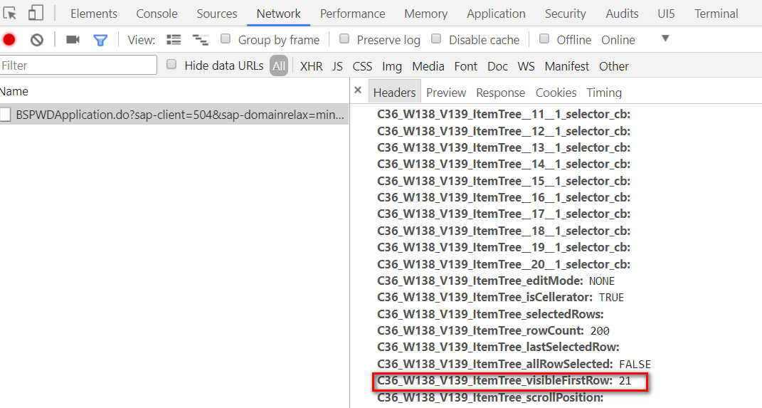 ABAP后台拿到这个visibleFirstRow参数后,知道从搜索结果记录里的第21条开始渲染,一直到第40条。
