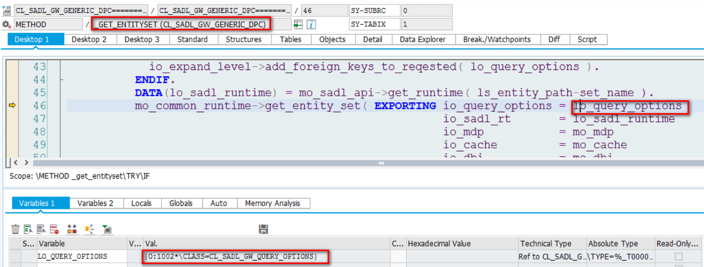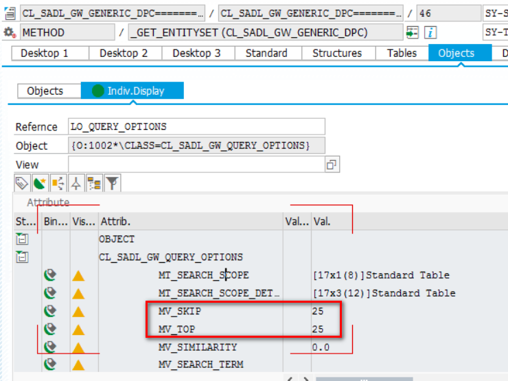 从前台通过UI5库文件发送的带有 top参数的OData请求,被后台接收并维护于io_query_options参数中: