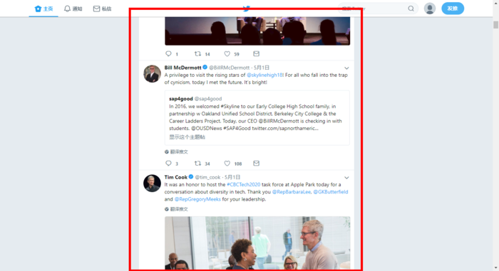 时间轴(Time Line): Twitter中最最重要的部分。一条条的推文组合在一起,就成了页面上中间那条长长的时间轴。