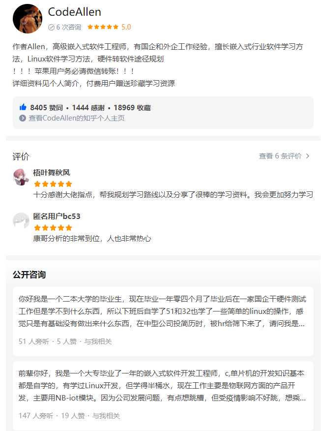 下方是我在知乎上的咨询评价和公开咨询(任何疑问可以联系我:coderAllen):