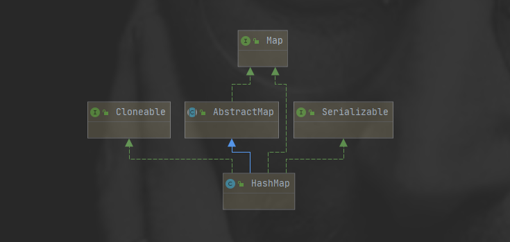 可以看到HashMap继承了AbstractMap抽象类实现了Map接口,但为什么说接口优先于抽象类呢?这些因为Java是单继承多实现,HashMap继承了AbstractMap抽象类之后就无法继承其他类了,如果是接口就没有这个限制,比如HashMap还需要提供序列化和克隆的功能,HashMap就可以实现三个接口Map<K,V>, Cloneable, Serializable。