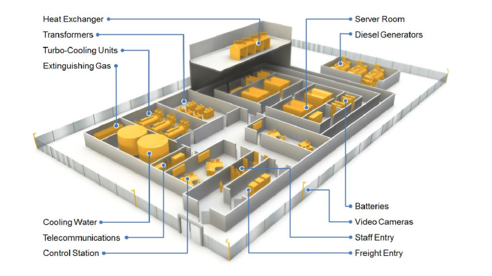 希望下面这张3D的示意图能让大家对于数据中心内部组成有一个更直观的了解。