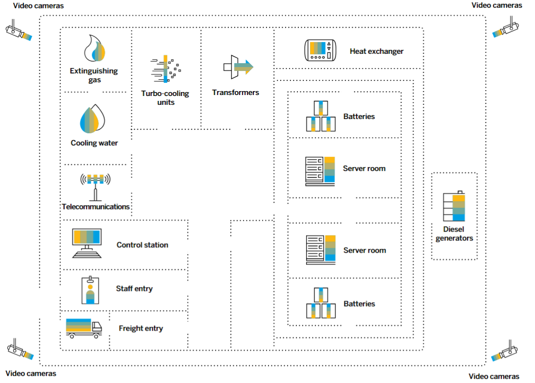 下图是位于德国St.Leon-Rot的SAP数据中心的布局和组件构成示意图。