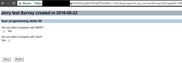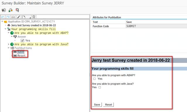 提交按钮采用SAP系统默认实现。最终生成的Survey模板如下图所示: