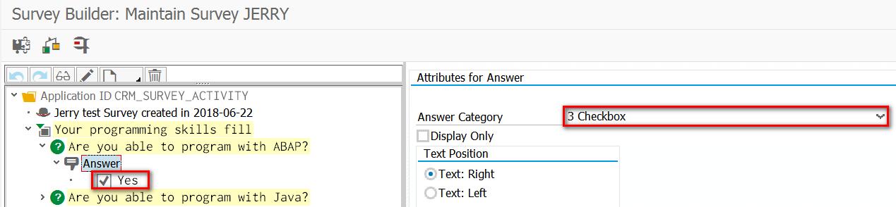 以第一个问题Are you able to work with ABAP?为例,使用菜单Goto->Switch Between HTML <-> XML Display显示该Survey的XML源代码: