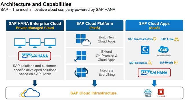 SAP公有云解决方案见下图最右侧,比较著名的有SAP SuccessFactors和SAP Cloud for Customer(C4C)等,作为SAP软件即服务(SaaS)的解决方案。