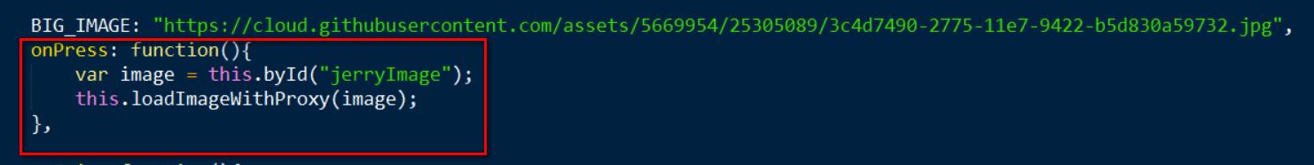 2. 再看控制器的代码:onPress执行loadImageWithProxy。
