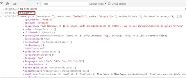 我们打开Chrome开发者工具,在console标签页输入navigator,回车,会发现这个对象包含了非常多的有用信息。