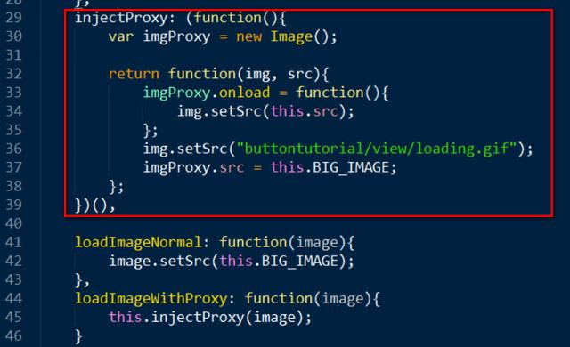 在injectProxy里,代码第30行创建了一个隐藏的Image代理对象,然后在第36行用真实的Image控件去显示本地的gif文件,以在UI上显示出动画效果,然后第37行用隐藏的Image代理对象去悄悄地加载大尺寸文件,这件事情终端用户并不知情。等到这个大尺寸图片加载完毕后,Image代理对象的onload回调函数会被浏览器触发,此时再让真实的Image控件把加载好的大尺寸文件显示出来。 效果就实现了。