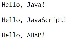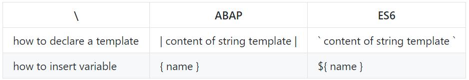 ABAP是我日常工作使用的编程语言,全称为Advanced Business Application Programming。语法和ES6是几乎完全一致的,只是ES6用成对的"`"来作为String Template开始和结束的标志,而ABAP用“|”。String Template里内部对变量的声明,ES6用的是${}, ABAP用的{}。
