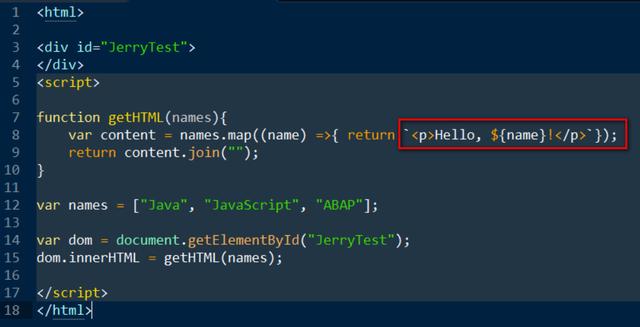 names是个数组,传入一个箭头函数,针对每个数组原则,构造一个字符串,代表一个p标签页,标签页的内容就为数组元素本身。