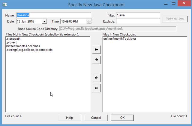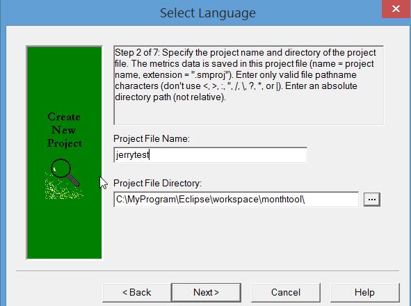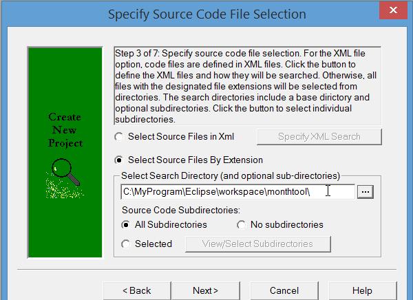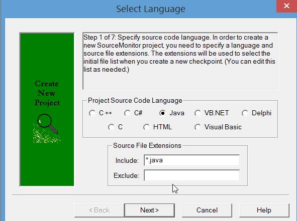 3. 指定您的Java项目文件夹内,您希望SourceMonitor计算哪些Java文件的环复杂度。