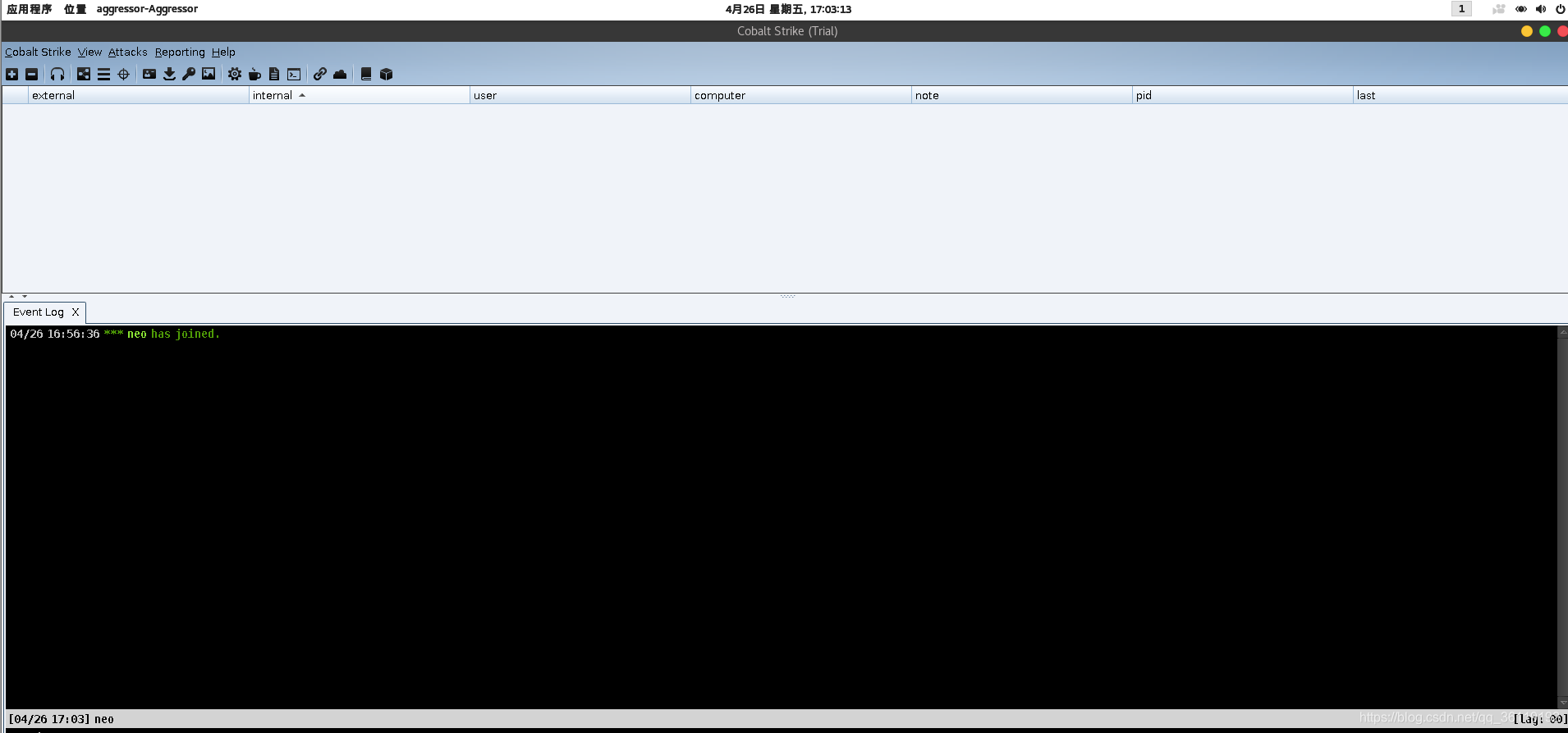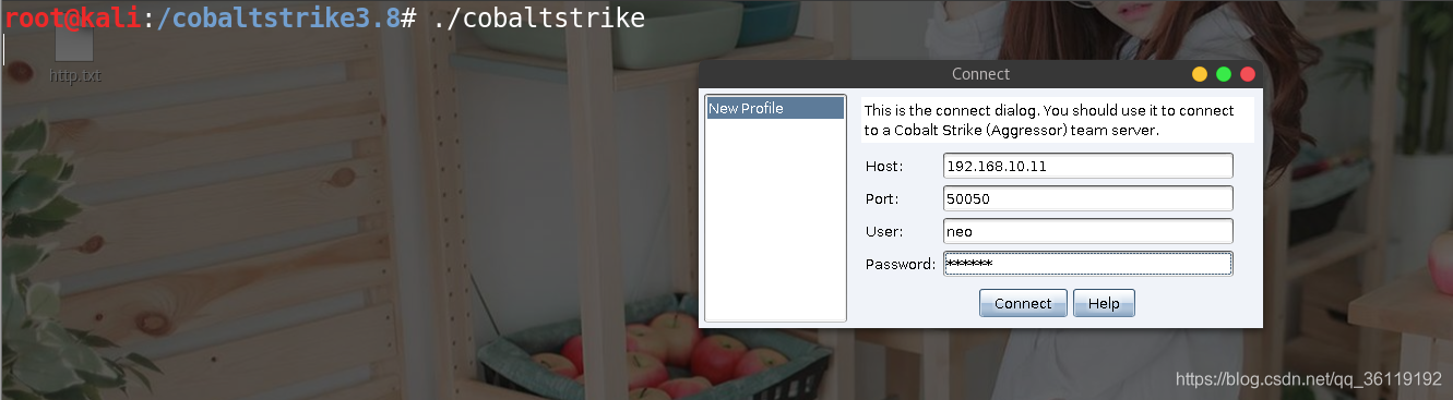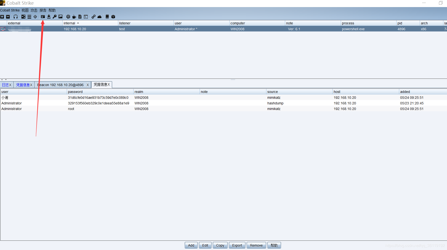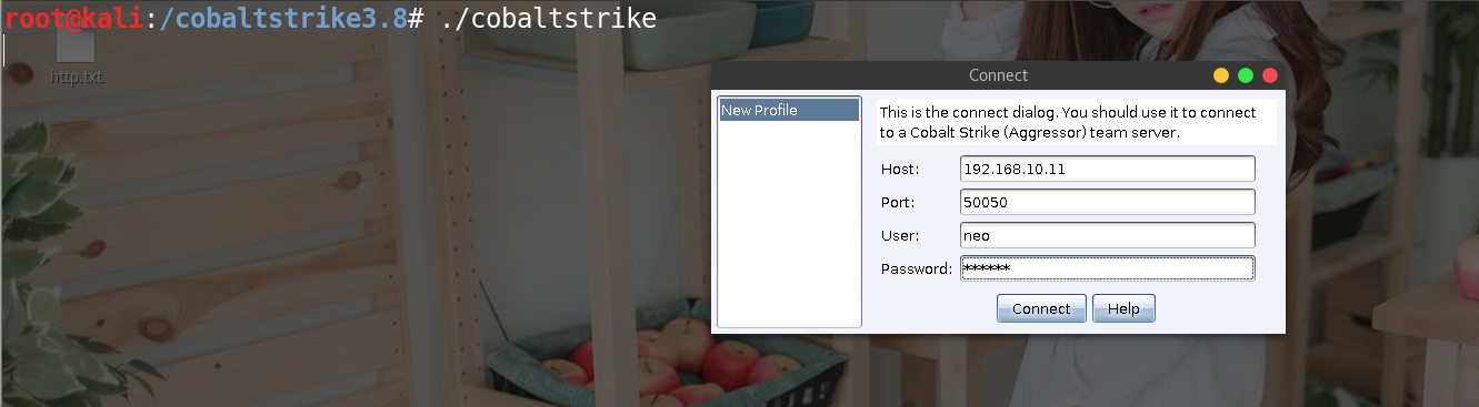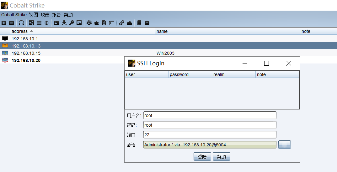 我们也可以打开windows下的cobaltstrike客户端,然后把ip设置为我们的启动时候的ip即可。