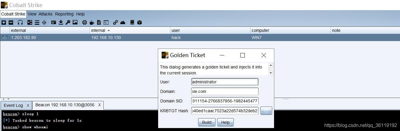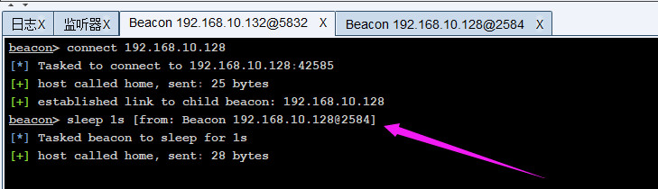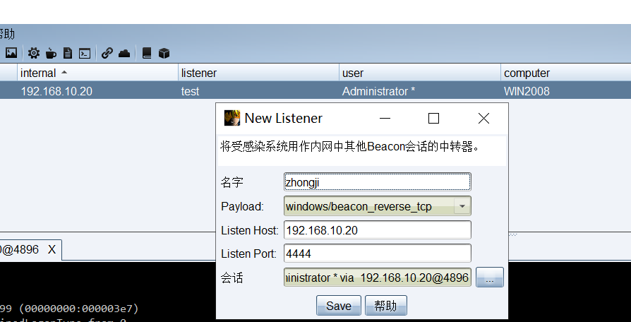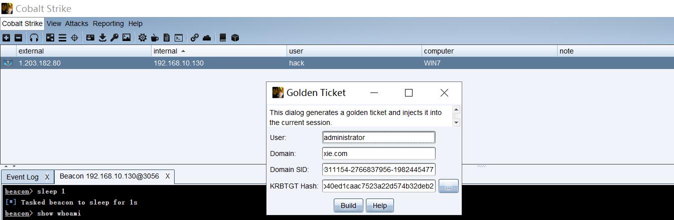 Beacon为内置的Listener,即在目标主机执行相应的payload,获取shell到CS上;其中包含DNS、HTTP、HTTPS、SMB。Beacon可以选择通过DNS还是HTTP协议出口网络,你甚至可以在使用Beacon通讯过程中切换HTTP和DNS。其支持多主机连接,部署好Beacon后提交一个要连回的域名或主机的列表,Beacon将通过这些主机轮询。目标网络的防护团队必须拦截所有的列表中的主机才可中断和其网络的通讯。通过种种方式获取shell以后(比如直接运行生成的exe),就可以使用Beacon了。
