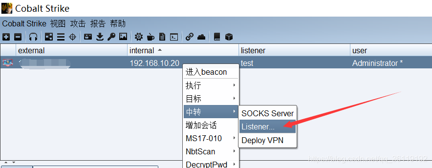 点击左上方CobaltStrike选项——>在下拉框中选择 Listeners ——>在下方弹出区域中单机add