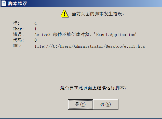 HTML Application用于生成hta类型的文件。HTA是HTML Application的缩写(HTML应用程序),是软件开发的新概念,直接将HTML保存成HTA的格式,就是一个独立的应用软件,与VB、C++等程序语言所设计的软件界面没什么差别。HTML Application有三种类型的生成方式,测试发现,只有powershell方式生成的hta文件才能正常执行上线,Executable和VBA方式生成的hta文件执行的时候提示当前页面的脚本发生错误。
