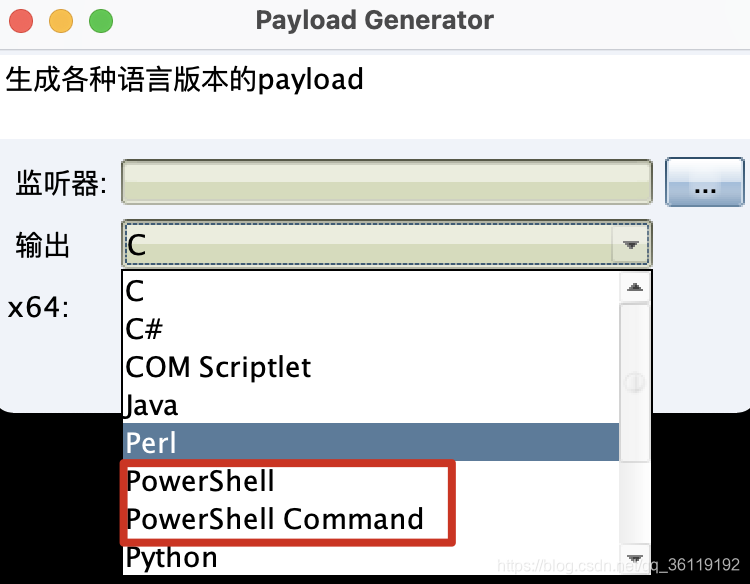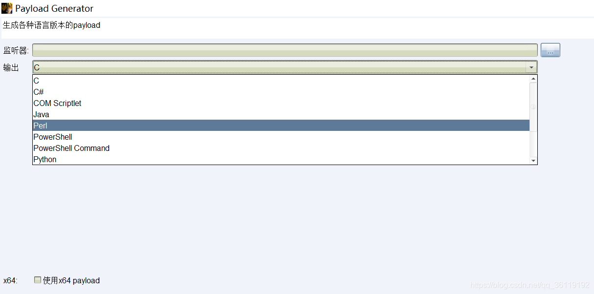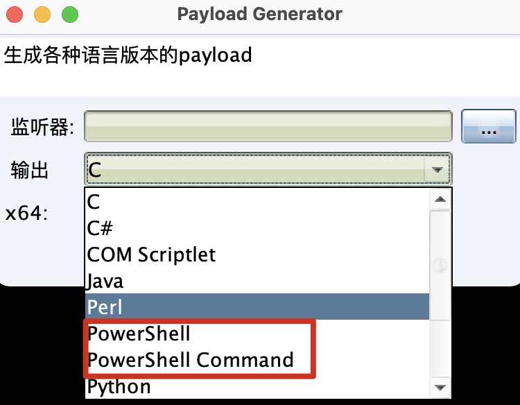 - Payload Generator 生成各种语言版本的payload,可以生成基于C、C#、COM Scriptlet、Java、Perl、PowerShell、Python、Ruby、VBA等的payload