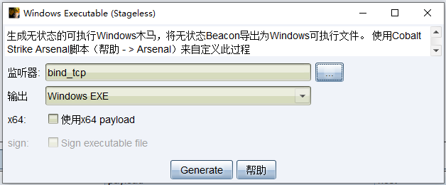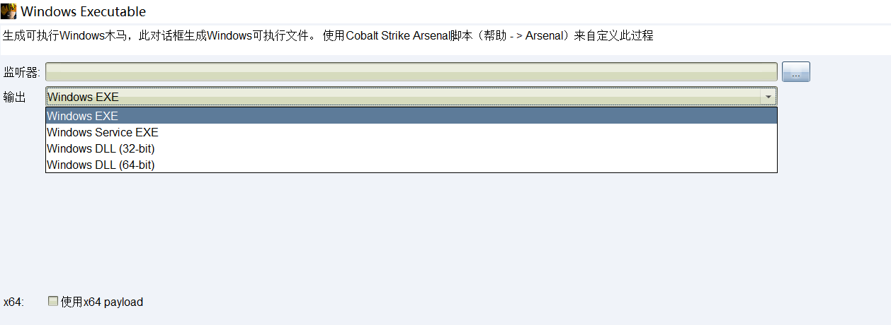 - Windows Executable 生成32位或64位的exe和基于服务的exe、DLL等后门程序