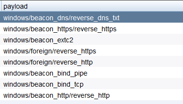 CobaltStrike4.0目前有以下8种Payload选项,如下: