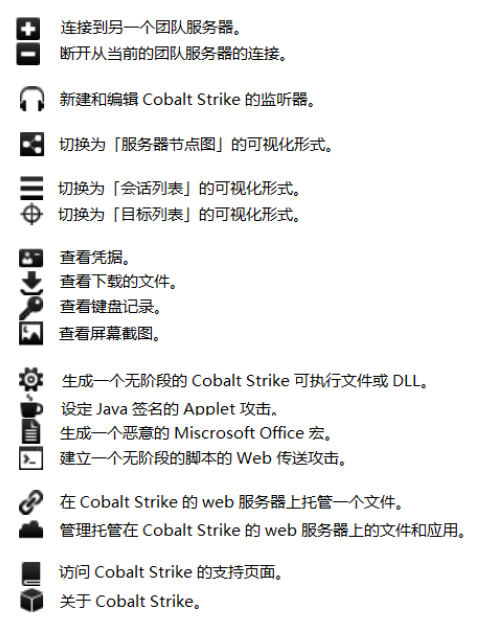 CobaltStrike集成了端口转发、服务扫描,自动化溢出,多模式端口监听,windows exe 木马生成,windows dll 木马生成,java 木马生成,office 宏病毒生成,木马捆绑。钓鱼攻击包括:站点克隆,目标信息获取,java 执行,浏览器自动攻击等等强大的功能!