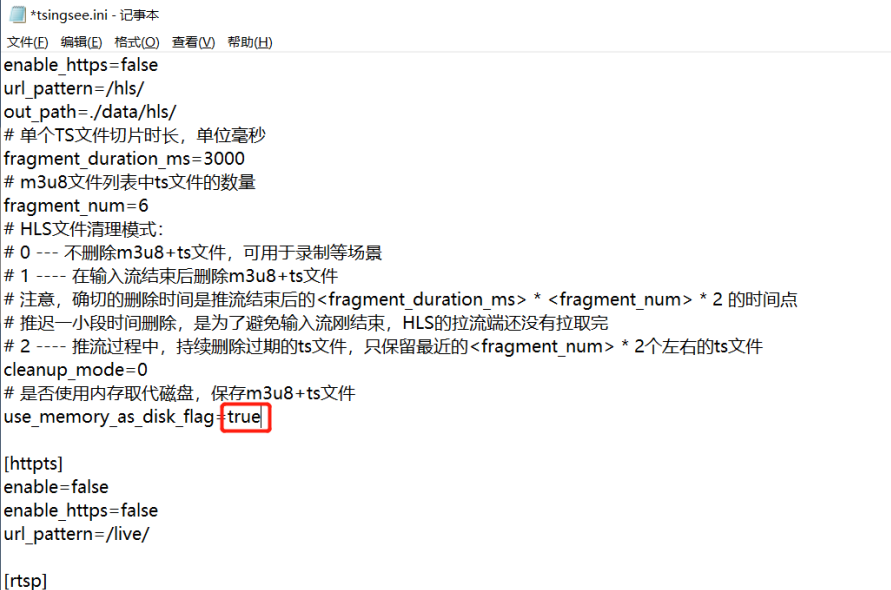 修改tsingsee.ini,在其配置文件内找到use_memory_as_disk_flag将其值改为true: