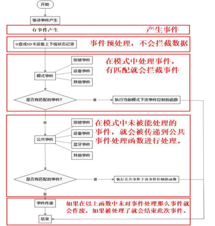 三大事件分为 模式里的系统事件类 和每个模式都有的 公共系统事件类 。流程图如下: