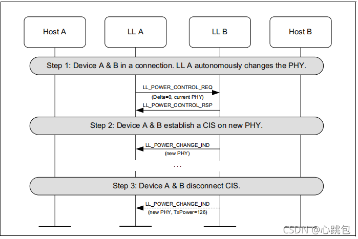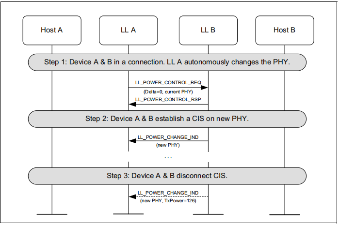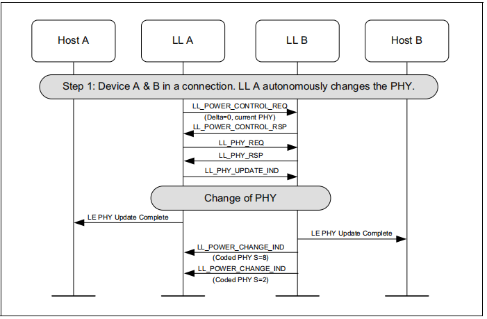 当执行PHY更新过程以切换到LE编码的PHY时,当本地和远程设备可以同时使用S=8和S=2编码时,控制器将它们作为单独的PHY来处理,以实现电源控制。