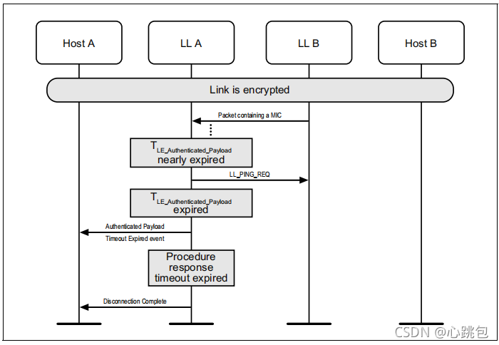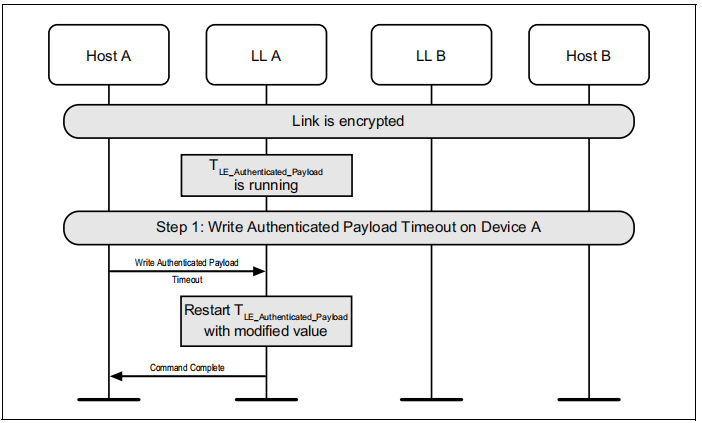 主机可以使用HCI_Write_Authenticated_Payload_Timeout命令来更改包含有效MIC的数据包之间的最大间隔,链路层在使用加密时将强制执行该间隔。