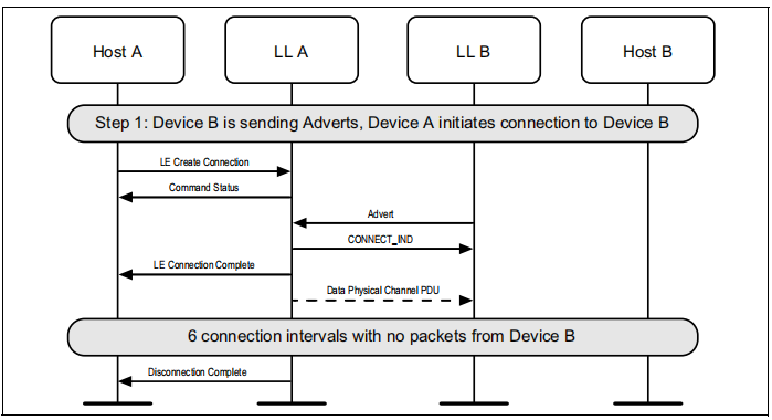 在建立失败之前,设备A不需要在6个连接间隔内发送数据通道pDU。但是,如果不这样做,设备B将无法响应。