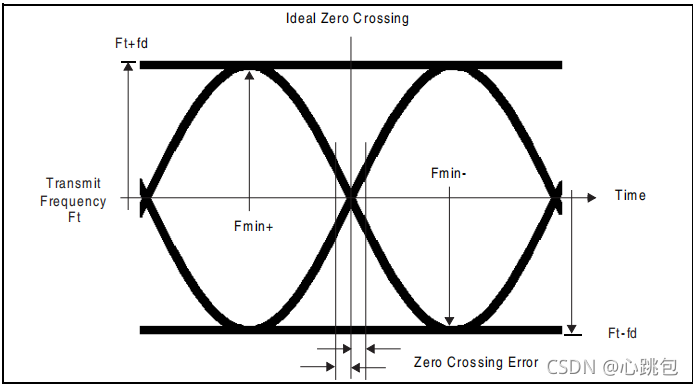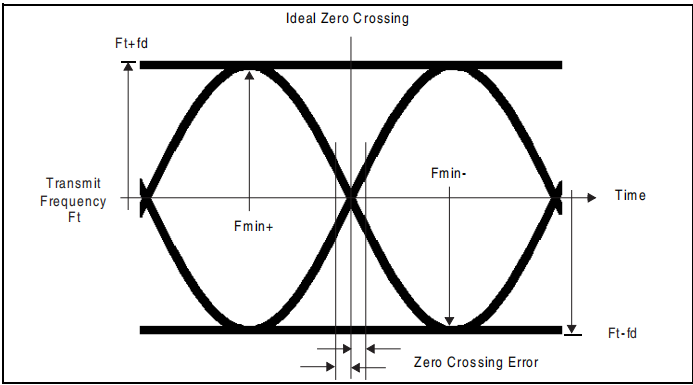 以每秒1(Msys/s)符号速率传输时,最小频率偏差不得小于185kHz,而以2 Msym/s符号速率传输时,最小频率偏差不得小于370kHz。符号定时精度应高于±50ppm。