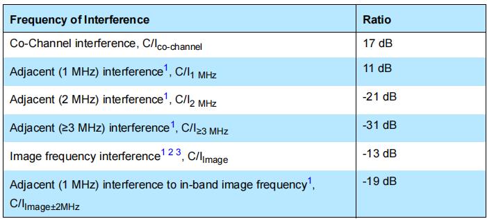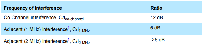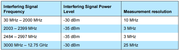 - 所需信号的频率应为f0,功率水平应超过参考灵敏度水平6dB。