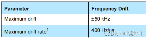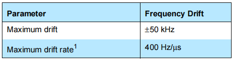 分组期间中心频率的偏差不得超过±150kHz,包括初始频率偏移和漂移。任何数据包期间的频率漂移均应小于50kHz。漂移速率应小于400Hz/µs。