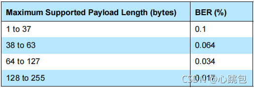 - 使用S=2编码时,LE编码PHY为500kb/s±1ppm