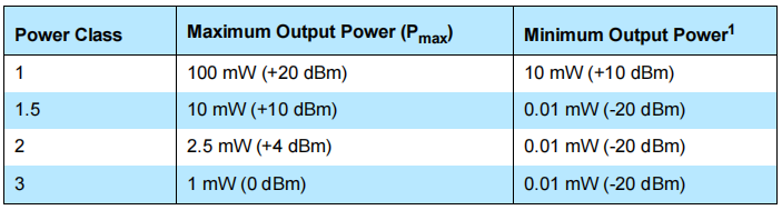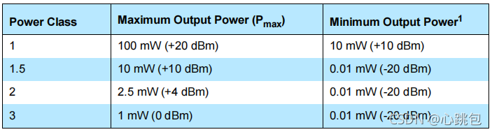 蓝牙设备可以根据LEPHY所支持的最高输出功率非正式地分为功率类别,如表3.2所定义。