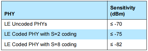 - 使用S=8编码时,LE编码PHY为125kb/s±1ppm