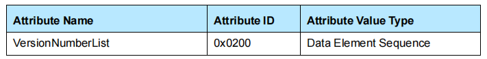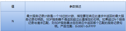 在每个服务记录实例中只需要存在两个属性。它们是服务器记录句柄(属性ID0x0000)和服务ClassIDList(属性ID0x0001)。服务记录中的所有其他服务属性都是可选的。