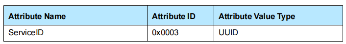 属性ID是一个16位的无符号整数,它可以区分每个服务属性和服务记录中的其他服务属性。属性ID还标识关联的属性值的语义。