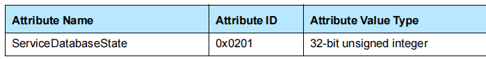 服务数据库状态是一个32位的整数,用于方便服务记录的缓存。如果存在此属性,则当将任何其他服务记录添加或删除到服务器的SDP数据库时,应更改其值。如果自上次客户端查询其值以来,该值没有更改,则客户端知道a)没有添加或删除SDP服务器维护的其他服务记录;b)从服务器获取的任何服务记录句柄仍然有效。在使用在之前的连接期间获得的任何服务记录句柄之前,在建立到服务器的连接时,客户端应查询此属性的值。