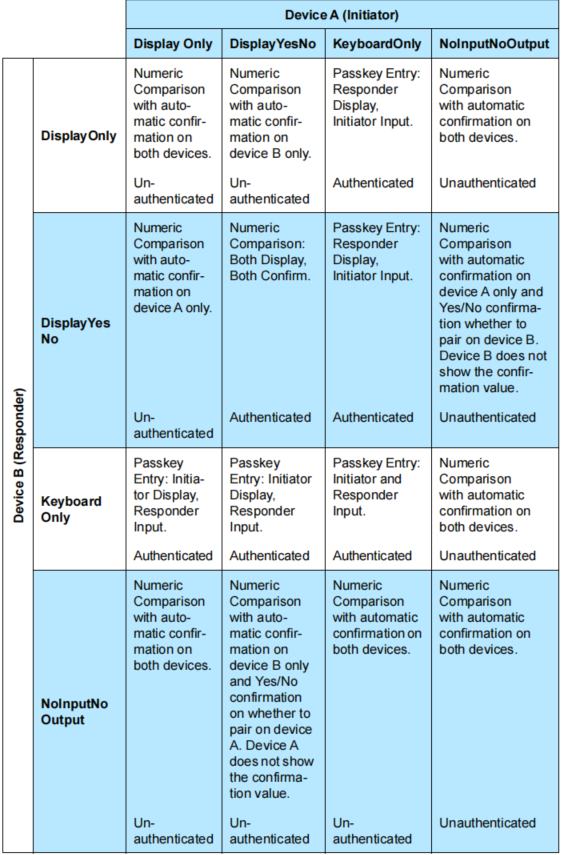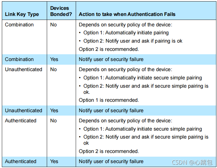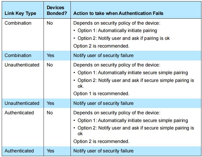 用户启动绑定过程并输入密钥,在两个蓝牙设备之间创建bond(可能还有安全关系),或者在建立过程中请求用户输入密钥,因为这些设备事先没有共享公共链接密钥。在第一种情况下,用户被称为执行“绑定(通过输入密码密钥)”,而在第二种情况下,用户被称为“使用密码密钥进行身份验证”。